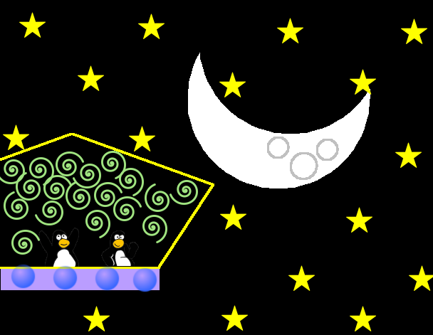 Dibujo en Tux paint: "pinguinos en el espacio"
